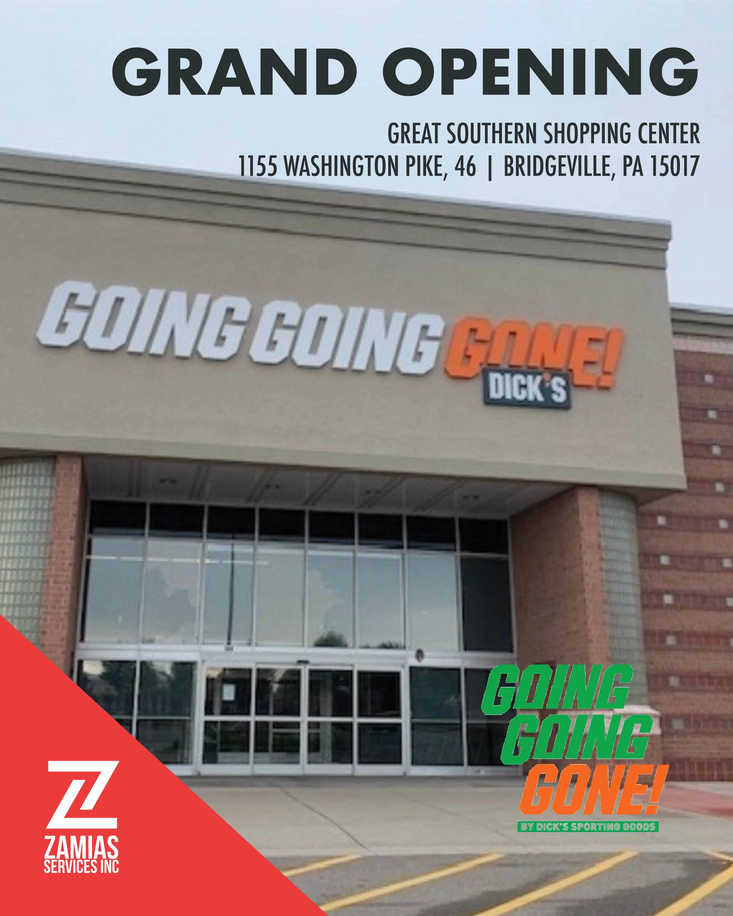 Going, Going, Gone! a division of Dick’s Sporting Goods has officially opened its 34,000 SF store at the Great Southern Shopping Center in Bridgeville, PA.
